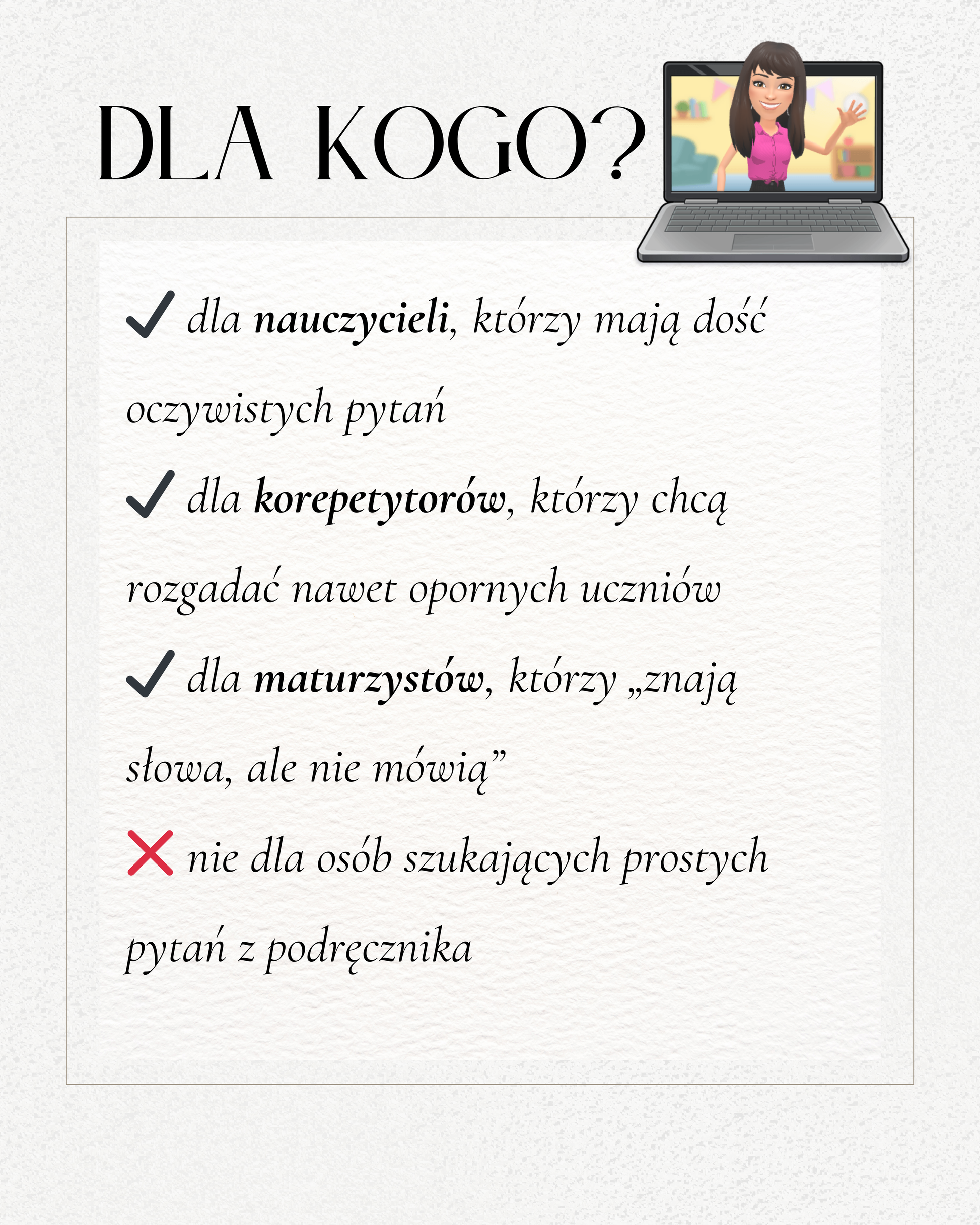 ✔️ dla nauczycieli, którzy mają dość oczywistych pytań